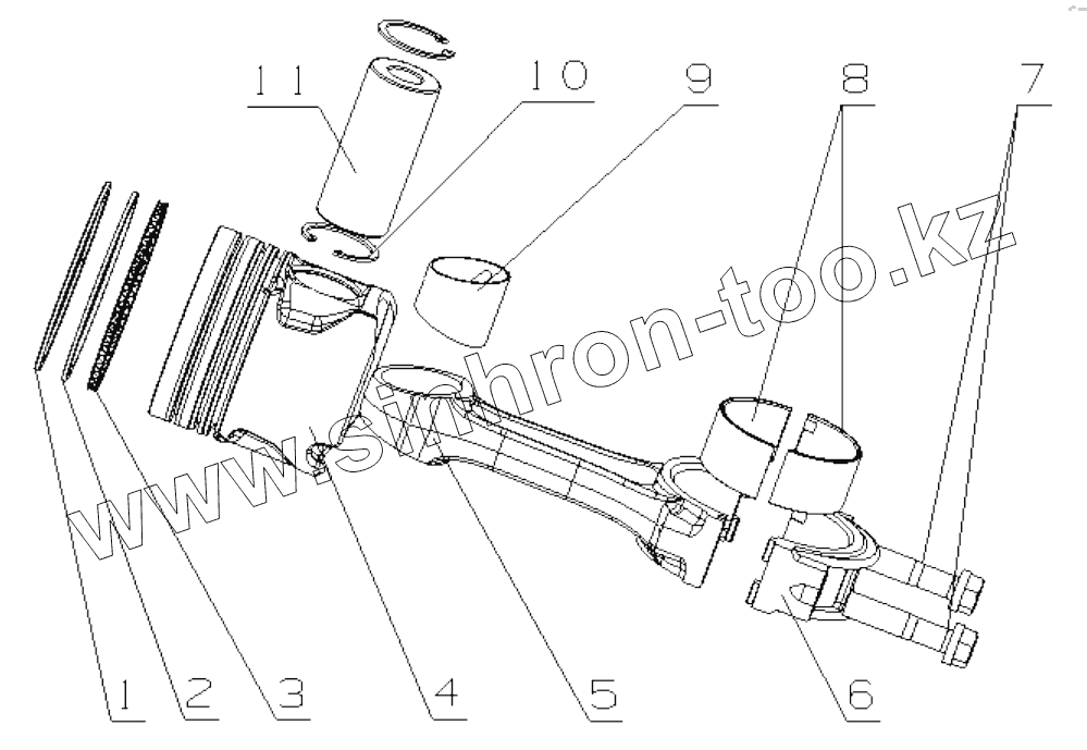 Каталог запасных частей к технике: Yuchai YC4D140N-50. D4A00-1004000 Piston and con-rod Assembly