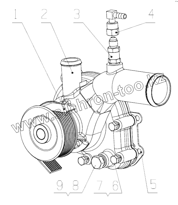 Каталог запасных частей к технике: Yuchai YC4D140N-50. D4G01-1307000 Water Pump Assembly