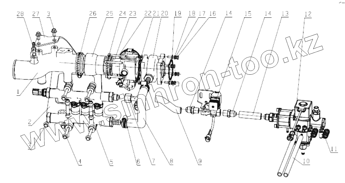 | 28 | J5700-1118072A | Выпускной сустав регулятора давления воздуха |