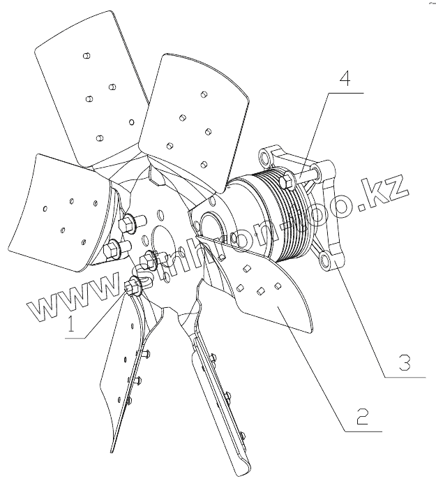 Каталог запасных частей к технике: Yuchai YC4D80-T10. D7008-1308000/03 Fan Assembly