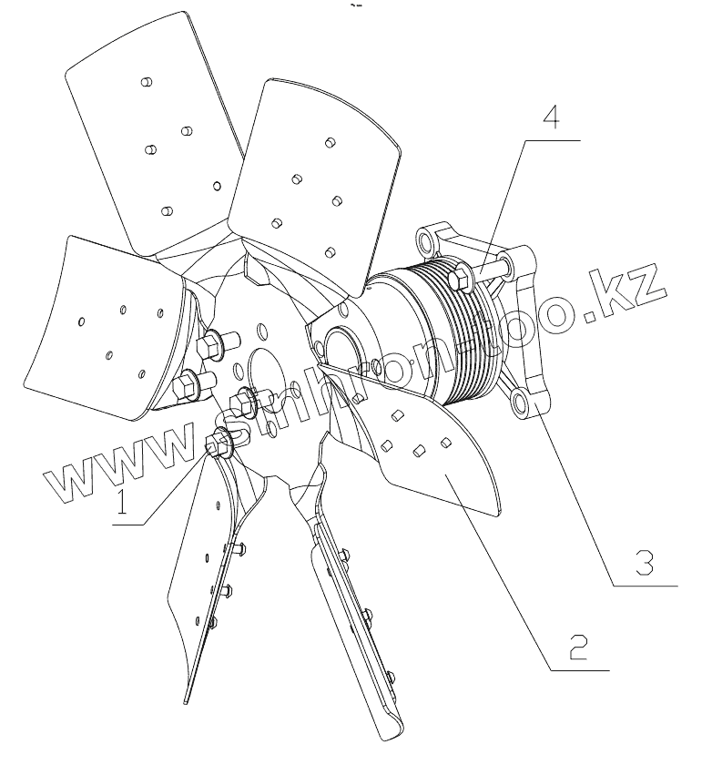 Каталог запасных частей к технике: Yuchai YC4D80-T20. D7008-1308000/06 Fan Assembly
