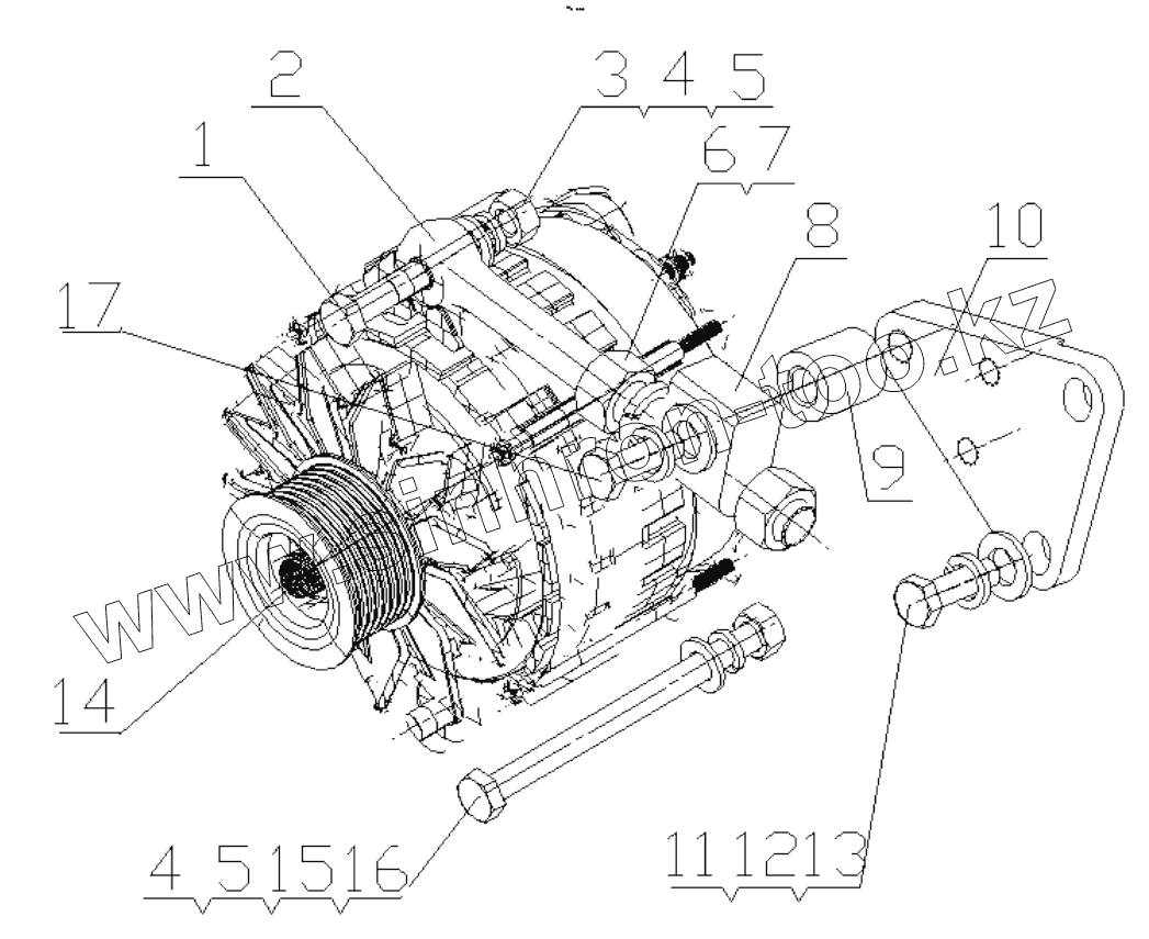 Каталог запасных частей к технике: Yuchai YC4D80-T20. D7019-3701000/02 Alternator Assembly