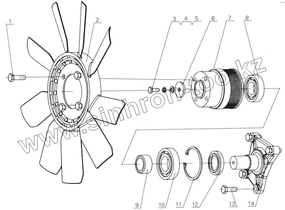 Каталог запасных частей к технике: Yuchai YC4D. D0200-1308000 Fan assembly