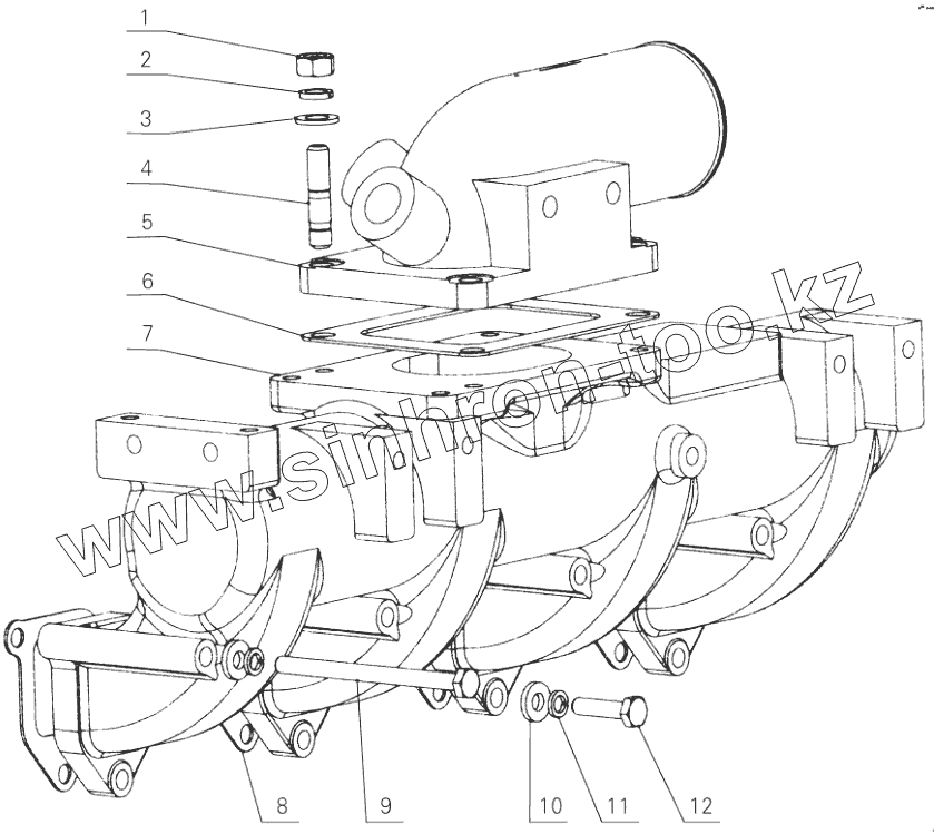 Каталог запасных частей к технике: Yuchai YC4D. D0800-1008010 Intake manifold assembly