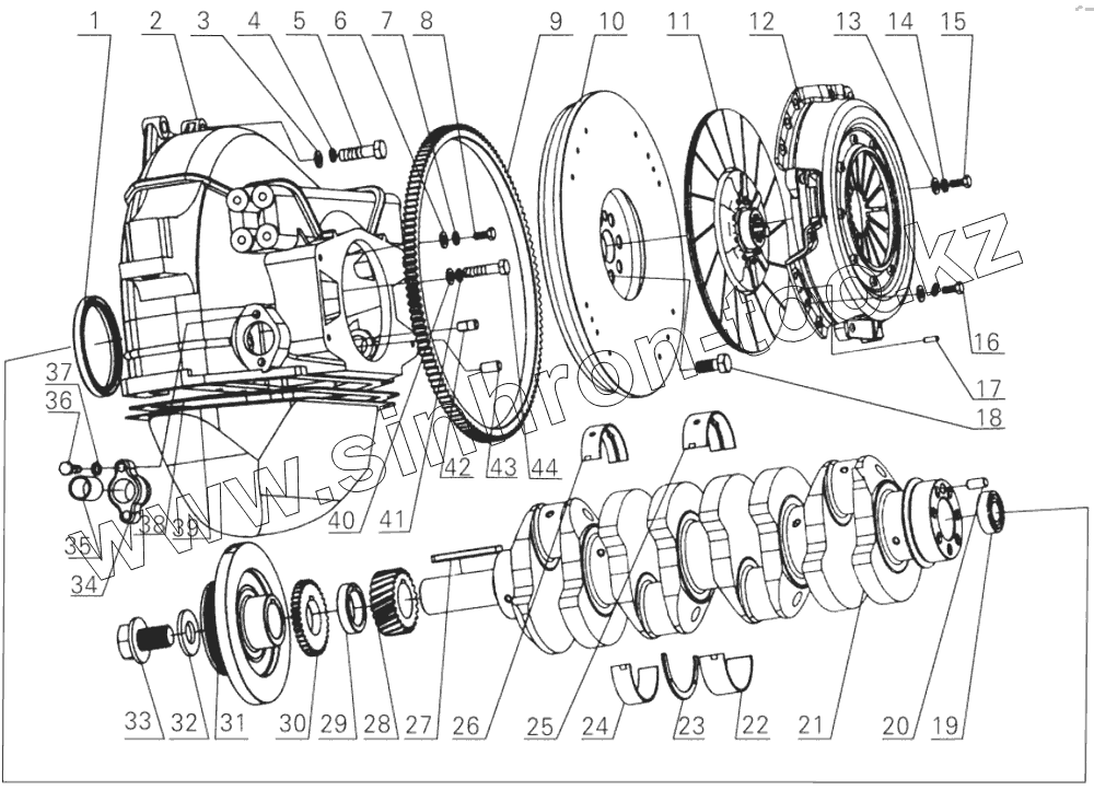 Каталог запасных частей к технике: Yuchai YC4D. D32-1005000 Crankshaft and flywheel assembly