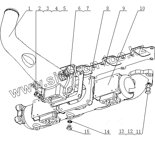 Каталог запасных частей к технике: Yuchai YC4E135-21 (E02D1). E1202-1008100 Детали впускного коллектора