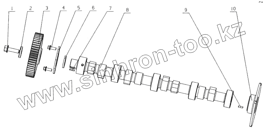 Каталог запасных частей к технике: Yuchai YC4E140-30 (E24FB). E2100-1006000 Распределительный вал в сборе