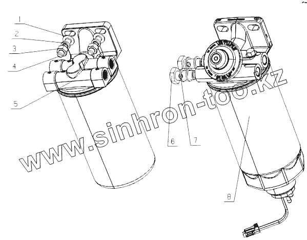 Каталог запасных частей к технике: Yuchai YC4E140-30 (E24FB). G2100-1105000 Топливный фильтр в сборе