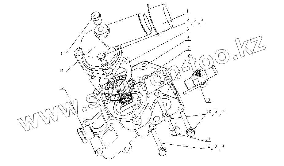 Каталог запасных частей к технике: Yuchai YC4E150-20 (E05D1). E0401-1306000 Термостат в сборе