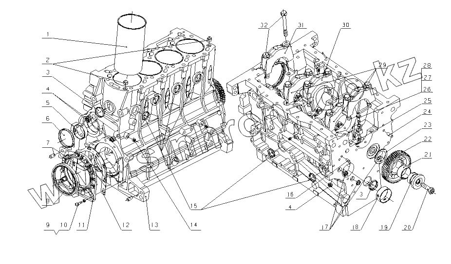 Каталог запасных частей к технике: Yuchai YC4E160-20 (E04F1). E0400-1002010 Блок цилиндров в сборе
