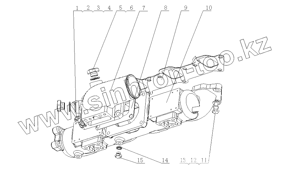 Каталог запасных частей к технике: Yuchai YC4E160-20 (E04F1). E1202-1008100 Детали впускного коллектора