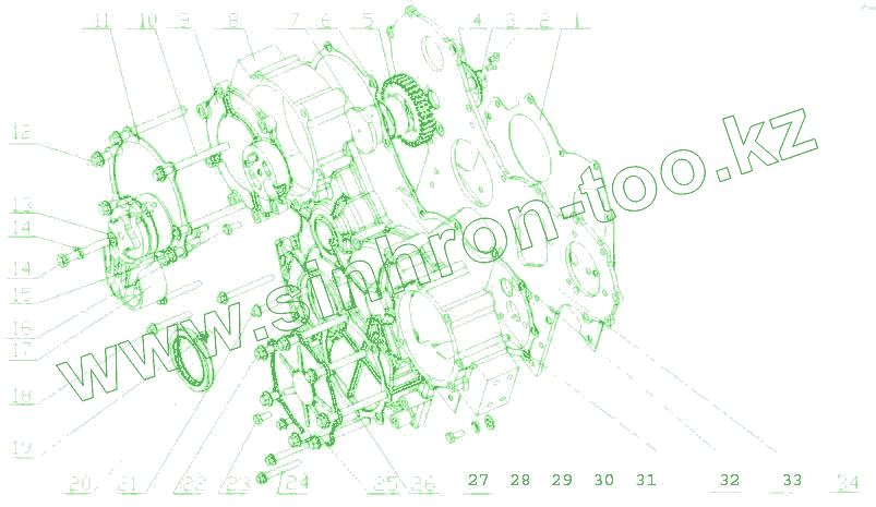 Каталог запасных частей к технике: Yuchai YC4E180-30 (E2100). E2100-1002200 Части корпуса шестерни