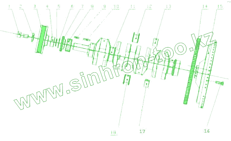 Каталог запасных частей к технике: Yuchai YC4E180-30 (E2100). E2100-1005000 Коленчатый вал и маховик
