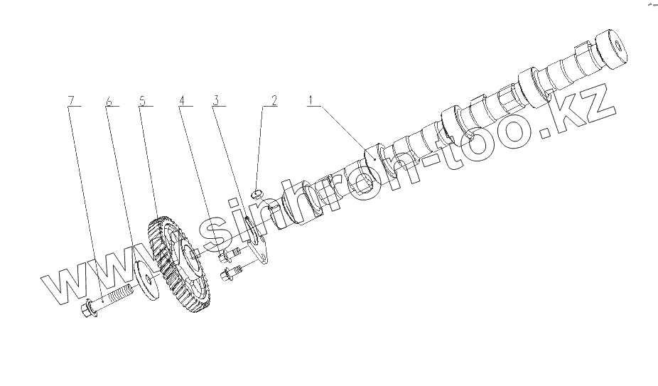 Каталог запасных частей к технике: Yuchai YC4F115-30 (F50D1). F3700-1006000 Распределительный вал в сборе