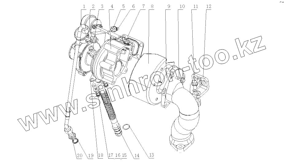 Каталог запасных частей к технике: Yuchai YC4F115-30 (F50D1). F50D1-1118000 Турбонагнетатель в сборе