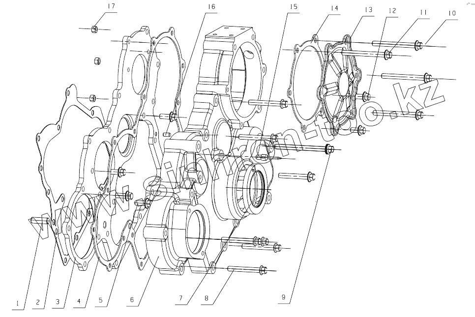 Каталог запасных частей к технике: Yuchai YC4F90-30. F50D1-1002200/08 Gear Housing Parts