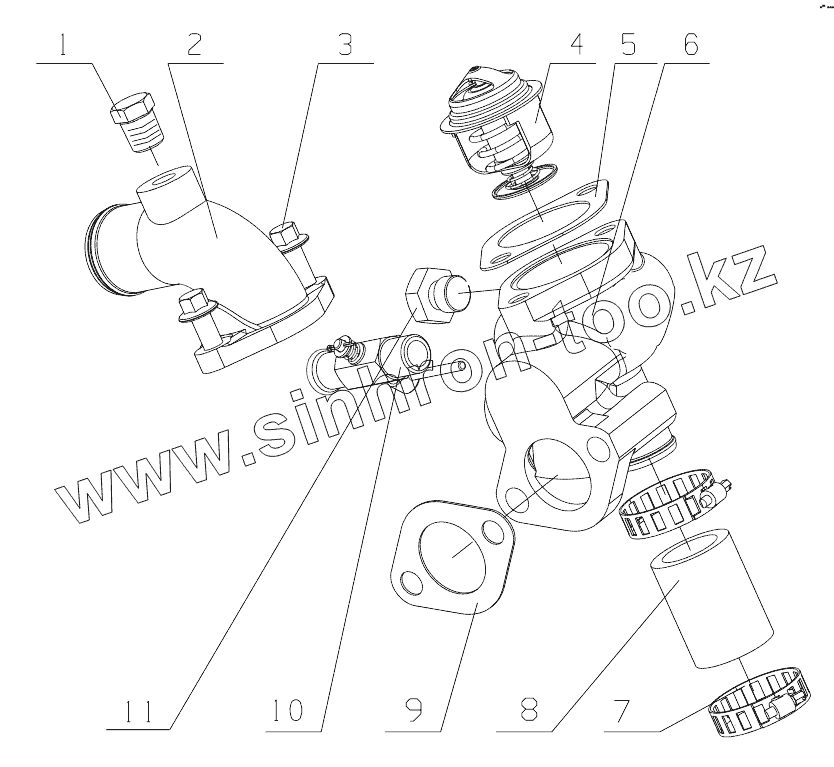 Каталог запасных частей к технике: Yuchai YC4F90-30. F50J1-1306000/07 Thermostat Assembly