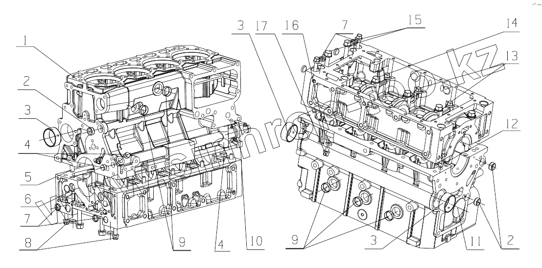 Каталог запасных частей к технике: Yuchai YC4F90-30. F6000-1002100/04 Cylinder Block Parts