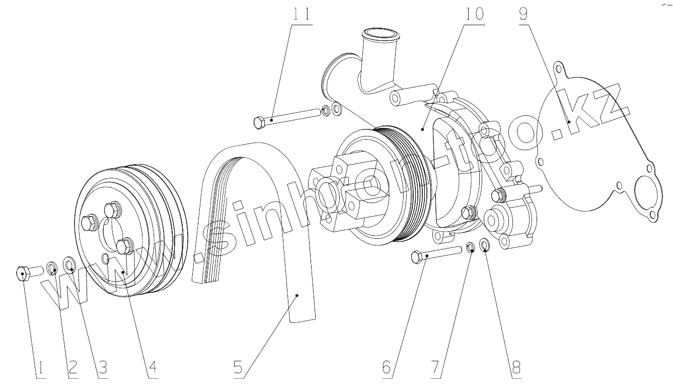 Каталог запасных частей к технике: Yuchai YC4G180-20. G0211-1307000 Water pump Assembly