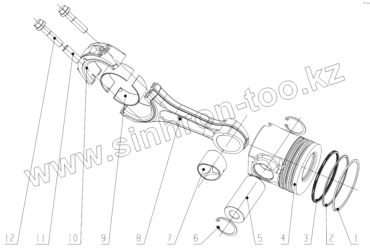 Каталог запасных частей к технике: Yuchai YC4G180-20. G4700-1004000 Piston and connecting rod