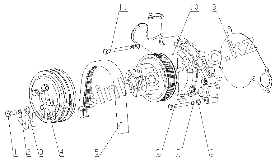 Каталог запасных частей к технике: Yuchai YC4G180-20 (G0803). G0211-1307000 Водный насос в сборе