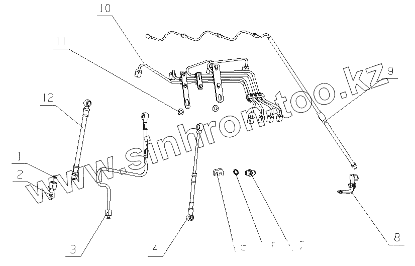 Каталог запасных частей к технике: Yuchai YC4G180-20 (G0803). G0408-1104000 Топливопровод в сборе