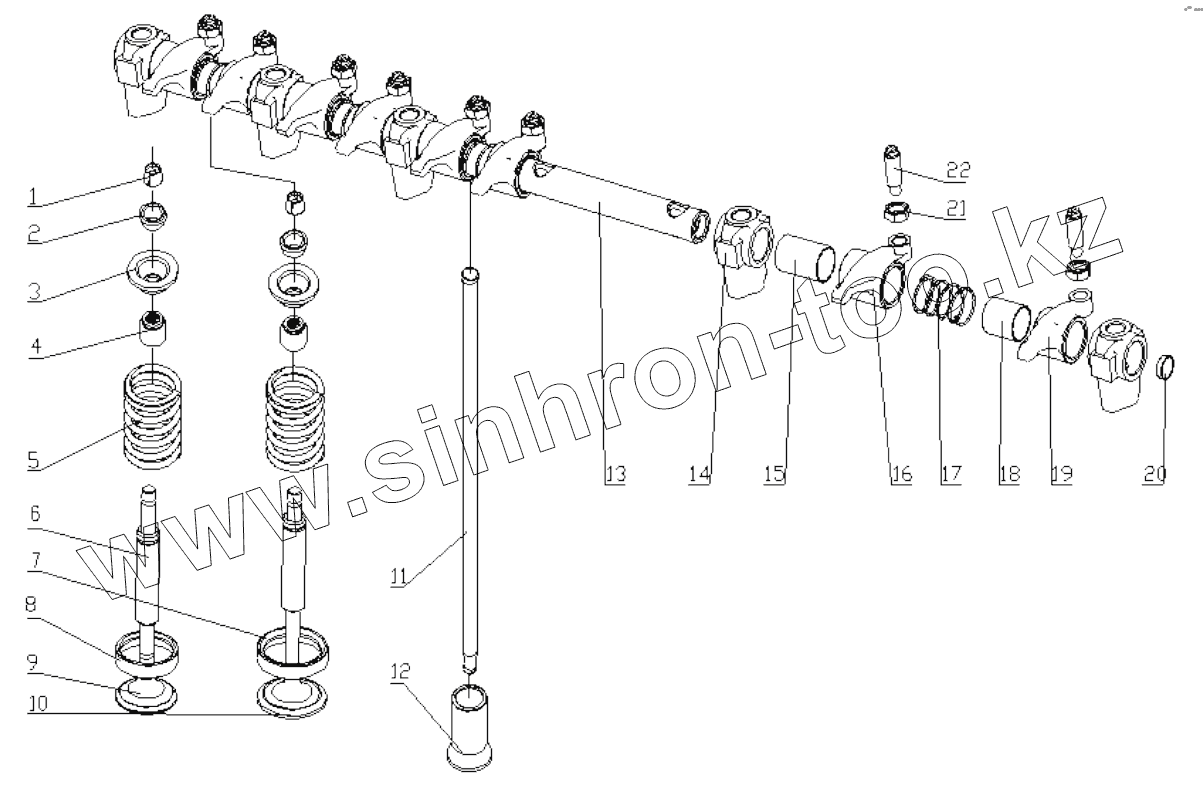 Каталог запасных частей к технике: Yuchai YC4G180N-40. G2C00-1007000/01 Valve Train System Assembly