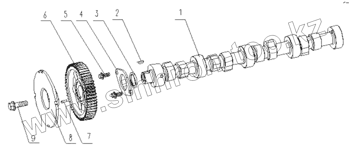 Каталог запасных частей к технике: Yuchai YC4G190N-50. G2K00-1006000/01 Camshaft Assembly