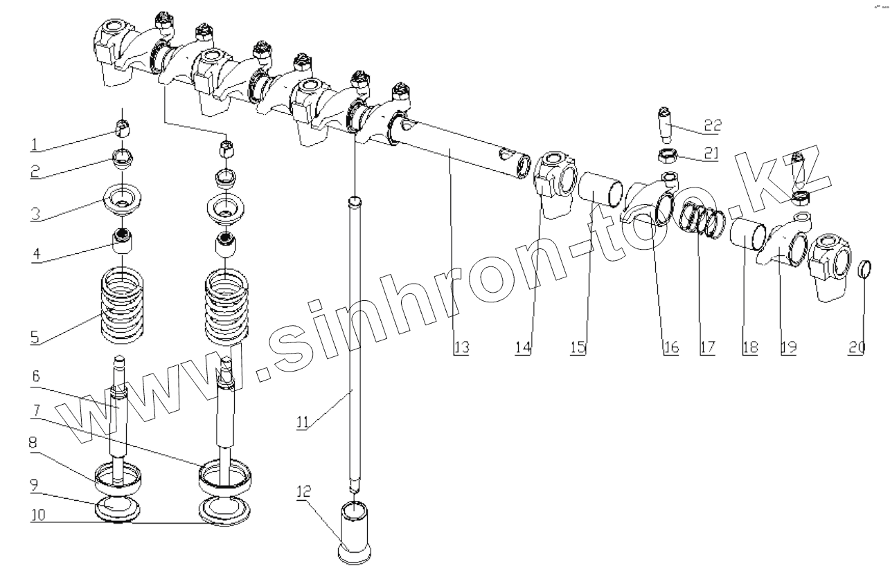 Каталог запасных частей к технике: Yuchai YC4G190N-50. G2R00-1007000/01 Valve Train System Assembly