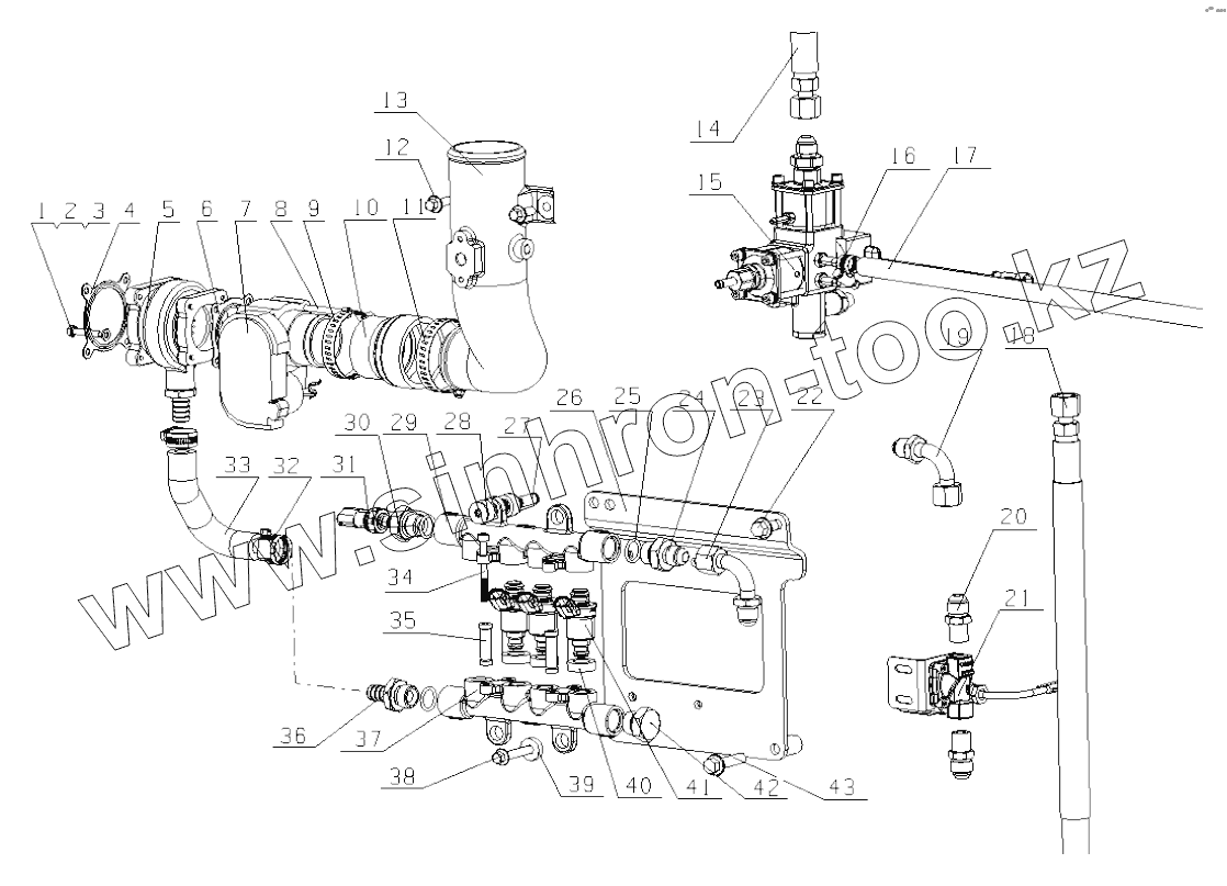 Каталог запасных частей к технике: Yuchai YC4G190N-50. G2S0B-1113000/03 Gas Supply Device Assembly