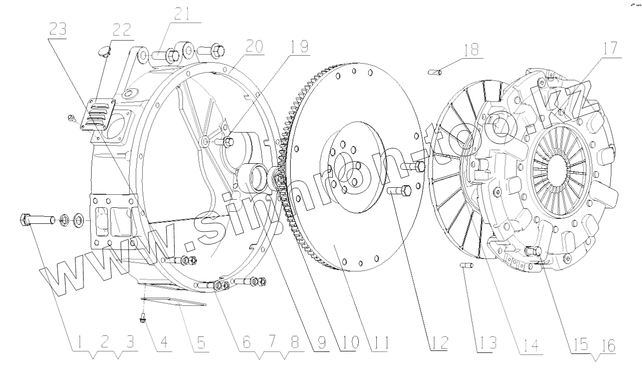 Каталог запасных частей к технике: Yuchai YC4G190N-50. G2S0B-1600000/03 Power Output Assembly