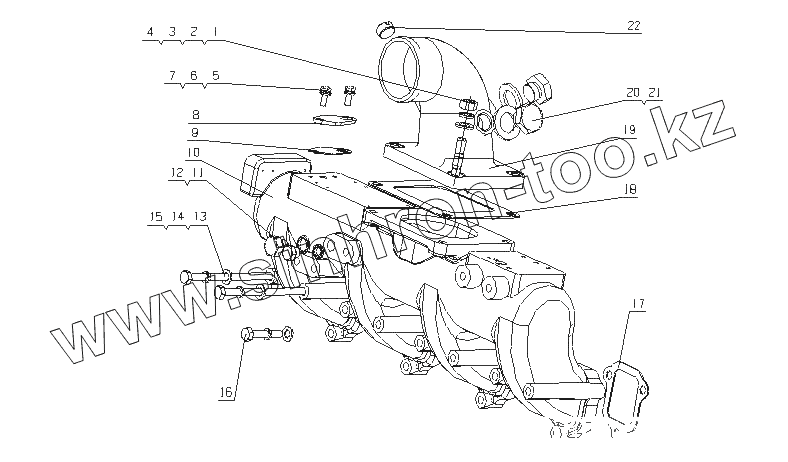 Каталог запасных частей к технике: Yuchai YC4G220-20 (G20JA). G20JA-1008100 Часть впускной трубы