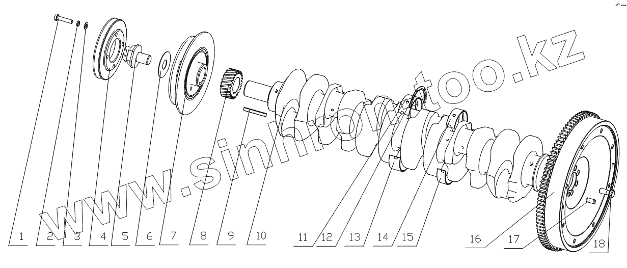 Каталог запасных частей к технике: Yuchai YC6108G. 1640H-1005000 Коленчатый вал и маховик в сборе