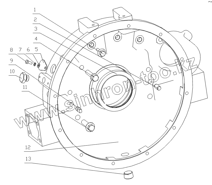Каталог запасных частей к технике: Yuchai YC6108G. 1640H-1600000 Картер маховика в сборе