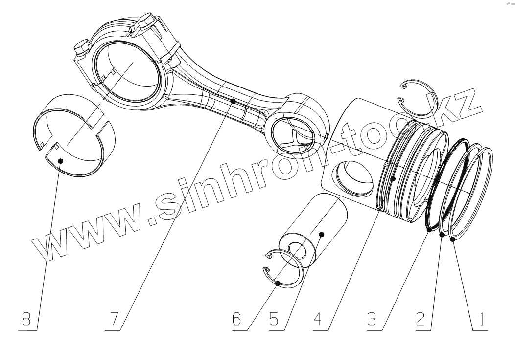 Каталог запасных частей к технике: Yuchai YC6108G. 340-1004000 Поршень и шатун в сборе