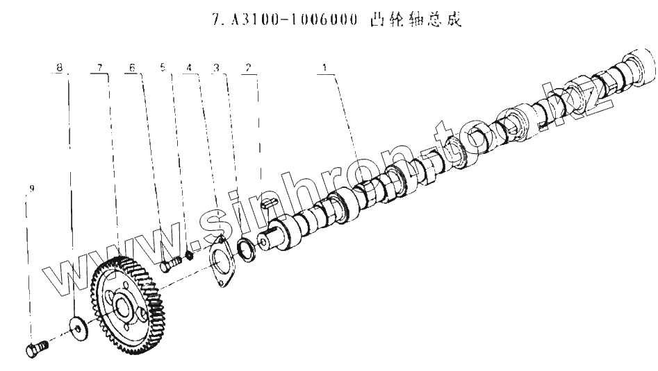 Каталог запасных частей к технике: Yuchai YC6A240-20 (A3515). A3100-1006000 Распределительный вал в сборе