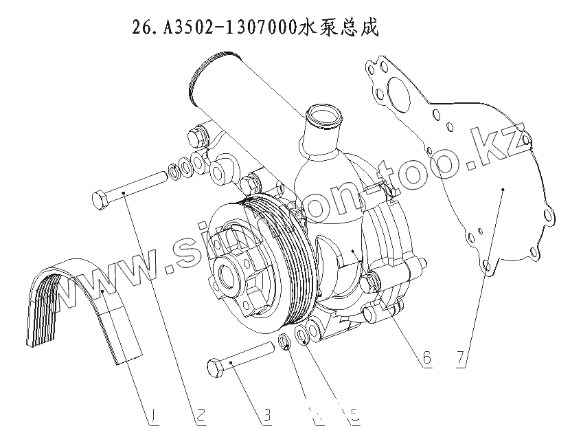 Каталог запасных частей к технике: Yuchai YC6A240-20 (A3515). A3502-1307000 Водный насос в сборе