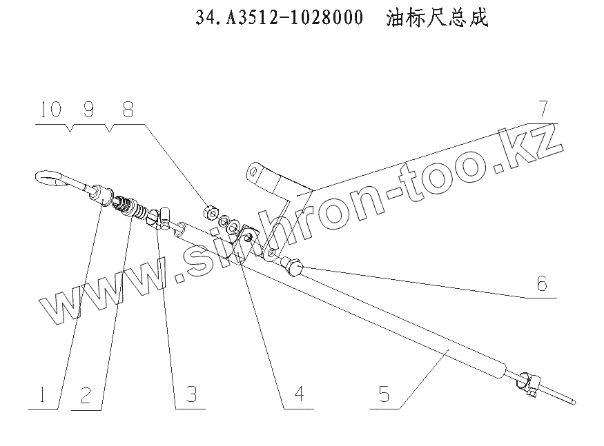 Каталог запасных частей к технике: Yuchai YC6A240-20 (A3515). A3512-1028000 Масляный щуп