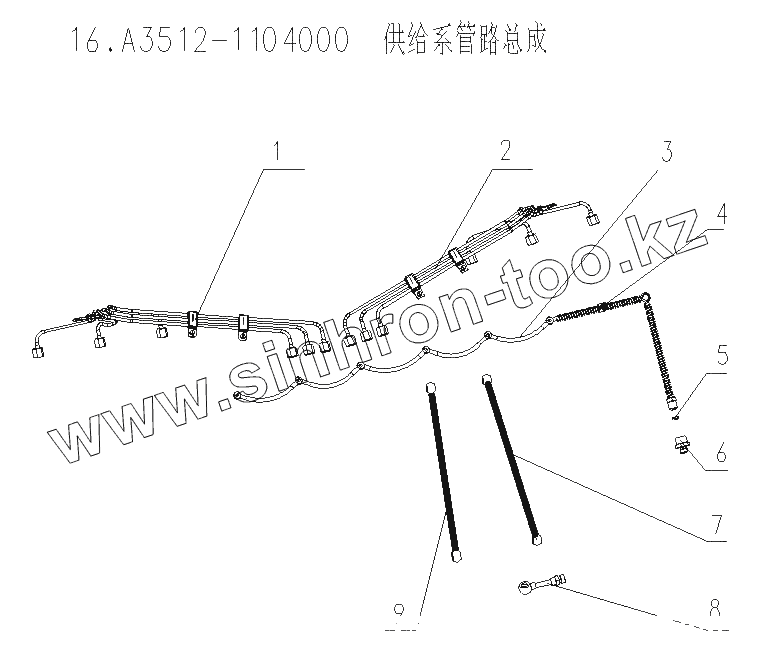 Каталог запасных частей к технике: Yuchai YC6A240-20 (A3515). A3512-1104000 Топливопровод в сборе