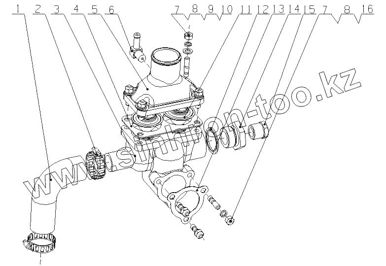 Каталог запасных частей к технике: Yuchai YC6A240-20 (A3515). A3512-1306000 Термостат в сборе