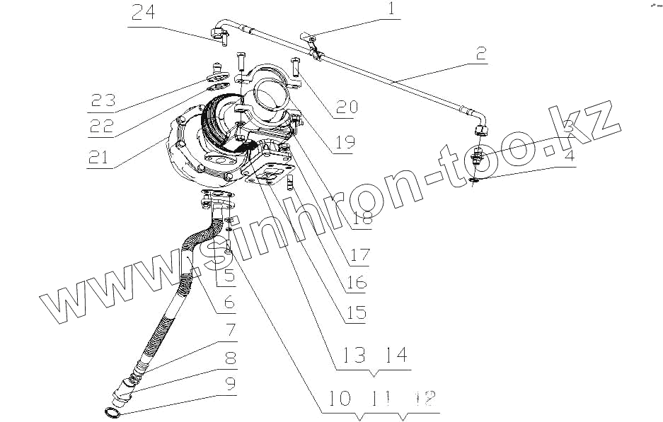 Каталог запасных частей к технике: Yuchai YC6A260-30 (A64YA). A64YA-1118000/01 Турбонагнетатель в сборе