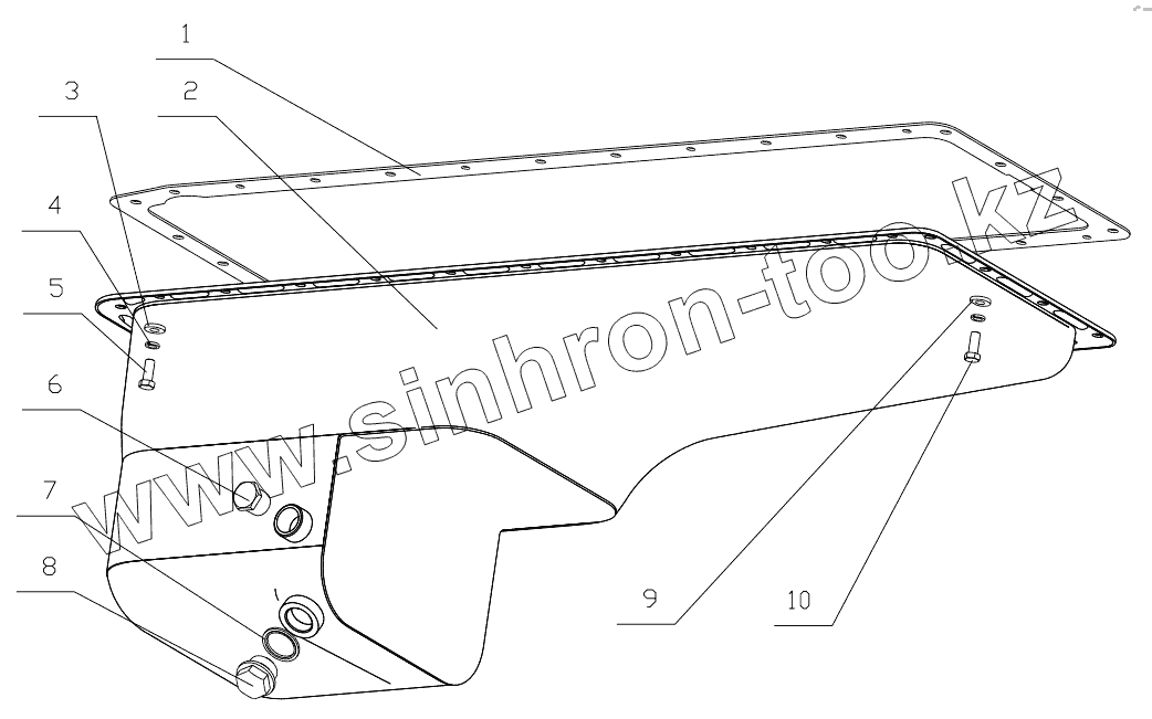 Каталог запасных частей к технике: Yuchai YC6B125-T10 (B7626). 340-1009000/05 Oil Sump Assembly