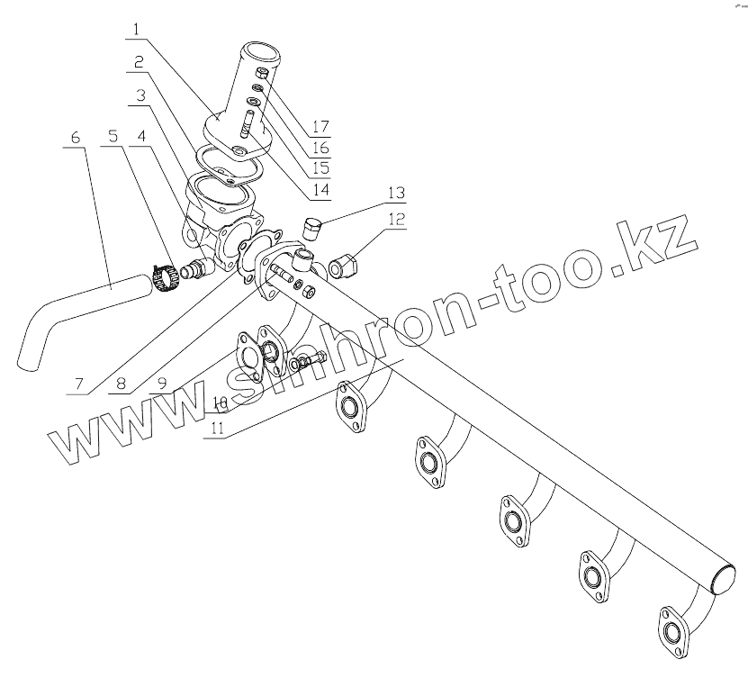 Каталог запасных частей к технике: Yuchai YC6B125-T11. 1640H-1303000/13 Water Outlet Pipe Assembly