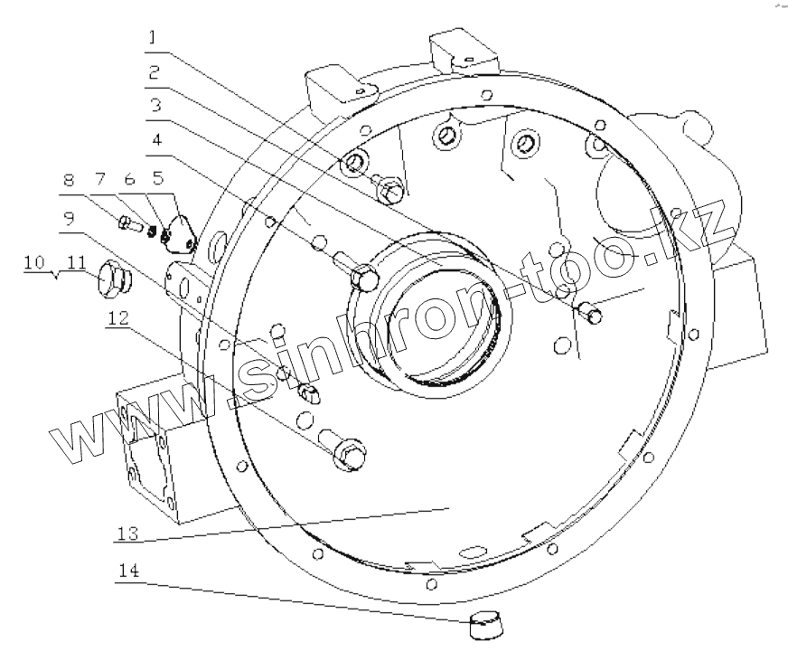Каталог запасных частей к технике: Yuchai YC6B125-T11. 1640H-1600000/03 Flywheel Housing Assembly