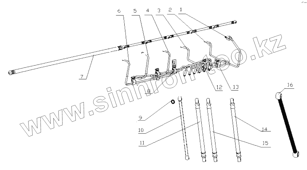 Каталог запасных частей к технике: Yuchai YC6B125-T11. B7615-1104000/08 Fuel Pipeline Assembly