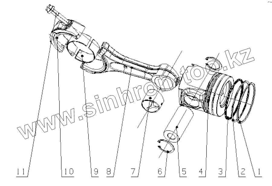 Каталог запасных частей к технике: Yuchai YC6B125-T20. 340-1004000/02 Piston Connecting Rod Assembly