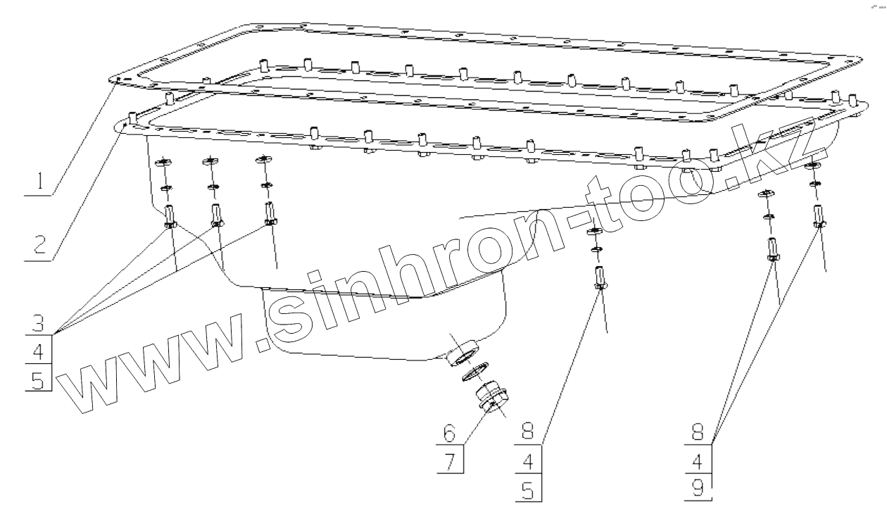 Каталог запасных частей к технике: Yuchai YC6B125-T21. 1640H-1009000/08 Oil Sump Assembly