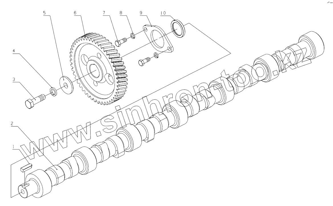 Каталог запасных частей к технике: Yuchai YC6B125-T21. 630-1006000A/02 Camshaft Assembly