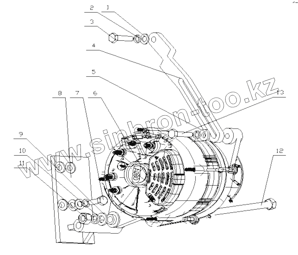 Каталог запасных частей к технике: Yuchai YC6B125-T21. B8601-3701000/01 Alternator Assembly