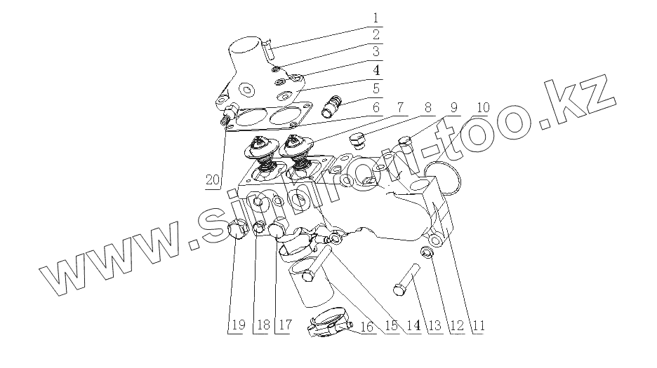 Каталог запасных частей к технике: Yuchai YC6G220P-30 (G3FQA). G59YA-1306000/09 Термостат в сборе